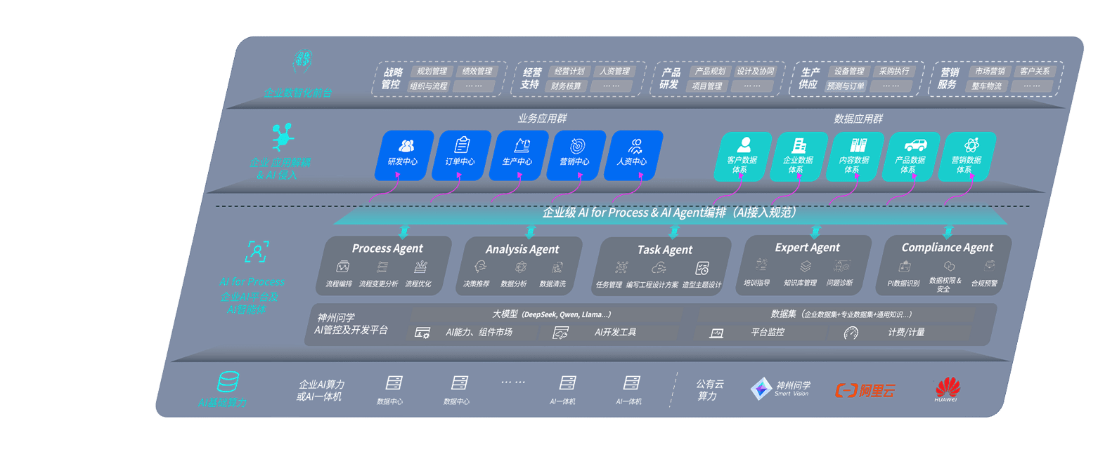 豪门国际问学智车解决方案是一套基于AI技术的汽车行业智能化系统,,,覆盖从底层算力到顶层AI应用的全栈方案。。。。方案由算力层、、、模型层和应用层组成:算力层,,,,方案支持多种一体机配置,,具备云端灵活部署、、、多云适配以及动态优化计算资源的能力;模型层,,,,豪门国际问学平台版提供了企业级AI应用一站式构建与管理平台,,,支持基于后训练强化技术的汽车企业专属模型的训练、、、、评测和运营;应用层,,,,豪门国际问学DeepSeek版提供包括超级员工、、智能招采、、智能营销、、、、智能客服、、AI for BI等一系列解决方案,,,,可助力汽车行业实现数字化转型,,,,让管理更智能、、、、响应更敏捷。。
